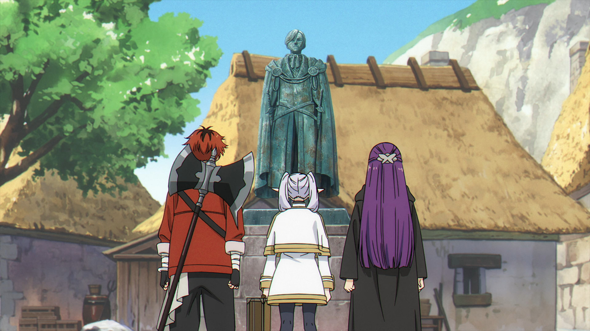 용사의 동상을 닦아달라는 의뢰를 맡은 프리렌 일행