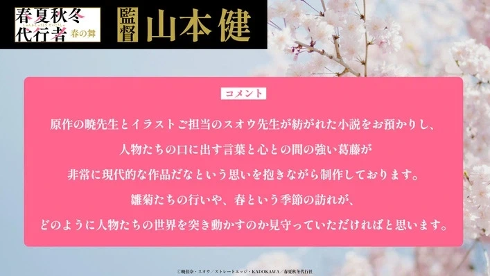 히나기쿠 일행의 행보와 '봄'이라는 계절의 방문이 어떻게 인물들의 세계를 움직여 나가는지 지켜봐 주셨으면 합니다.