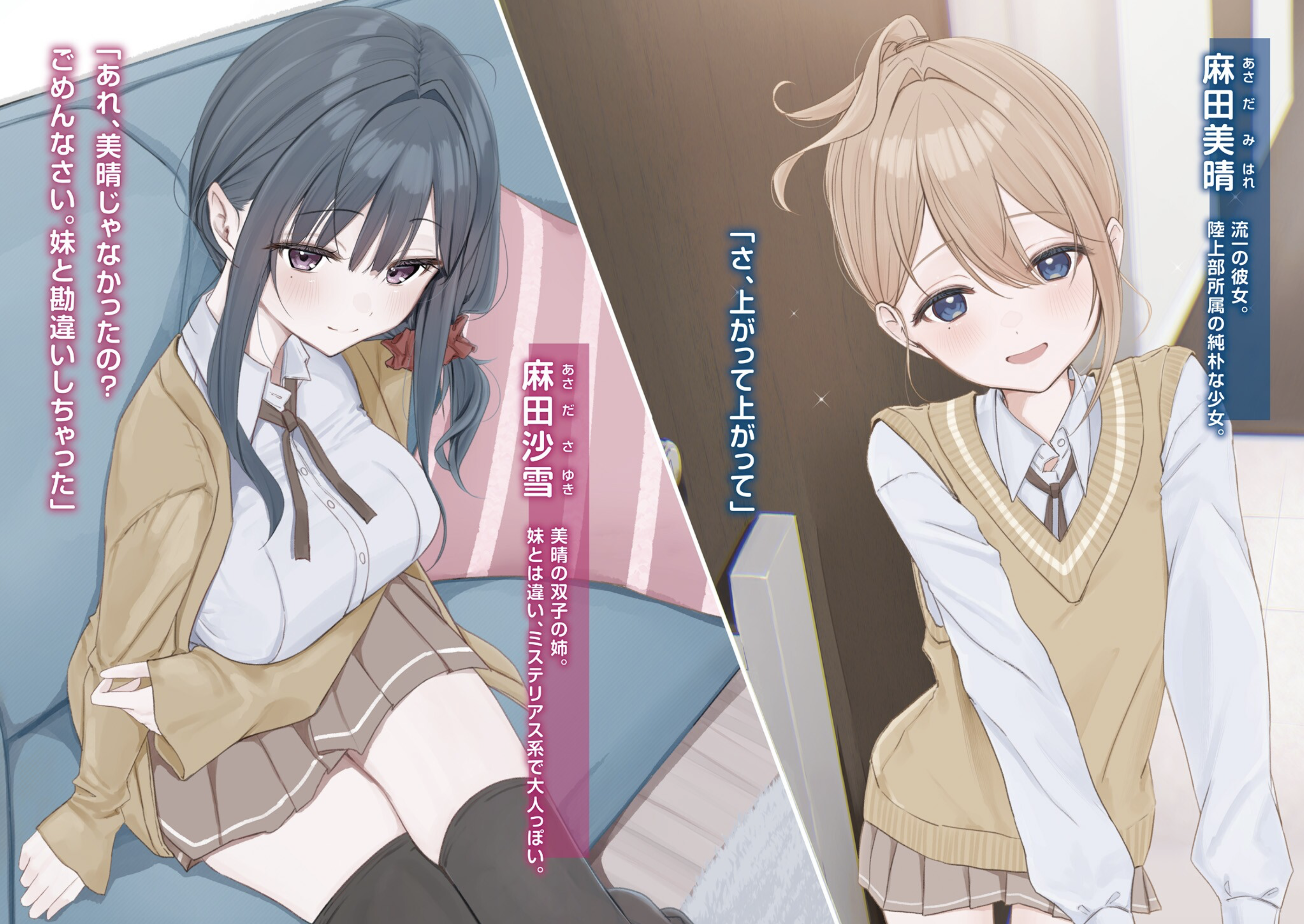 시부카와 류이치는 연인 아사다 미하루의 집에서 쌍둥이 언니 사유키를 만난다.