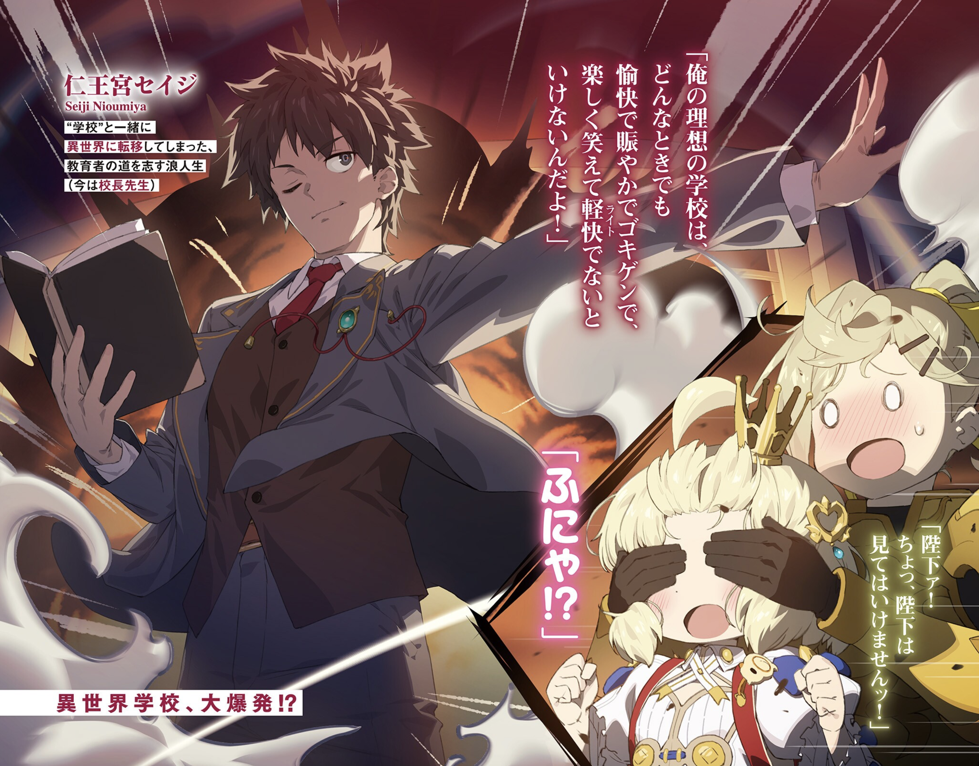 교육자의 길을 꿈꾸는 재수생 니오구 세이지는 어느 날 이세계로 전이해버린다――어째서인지 자아를 지닌 ‘학교’와 함께.