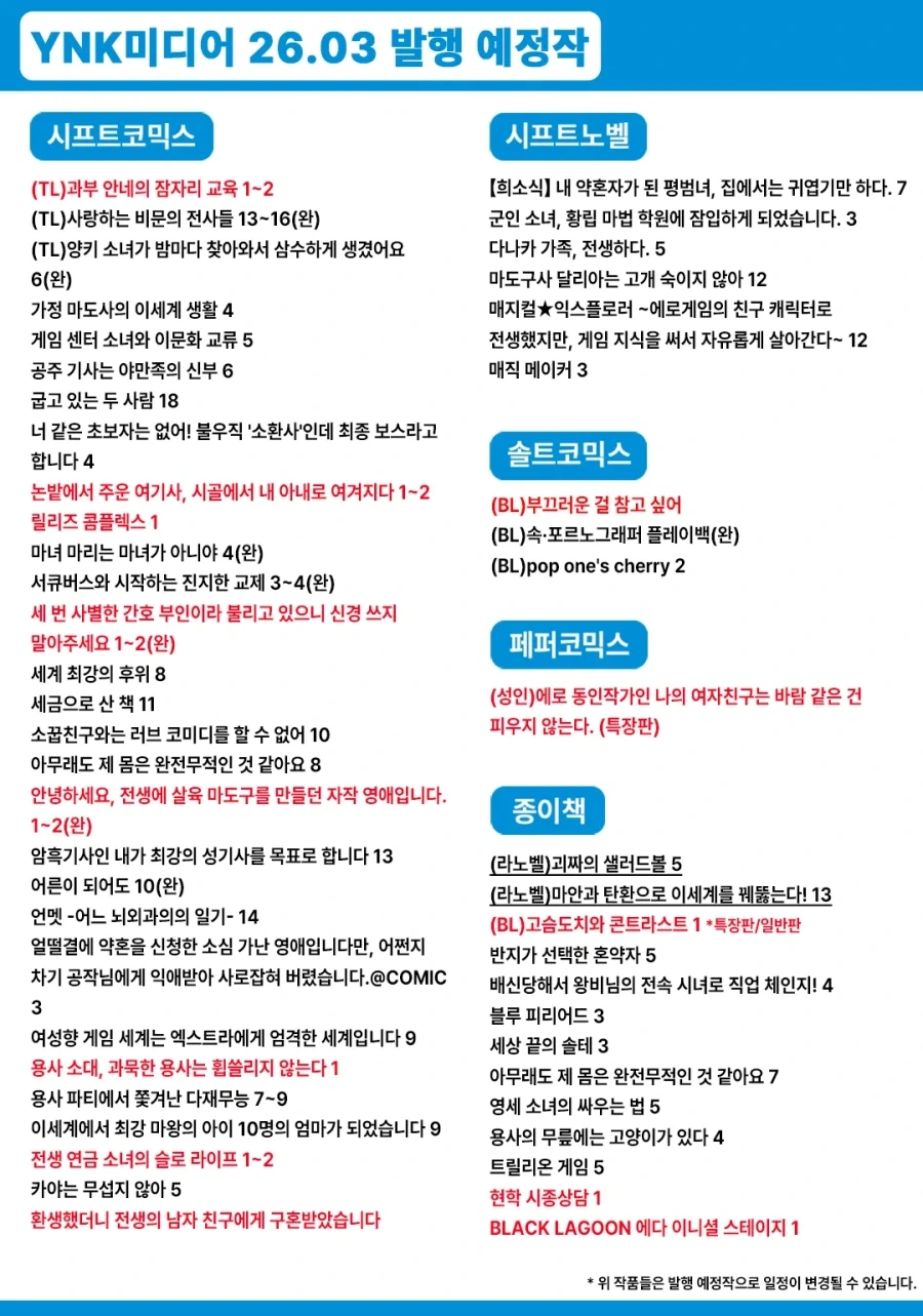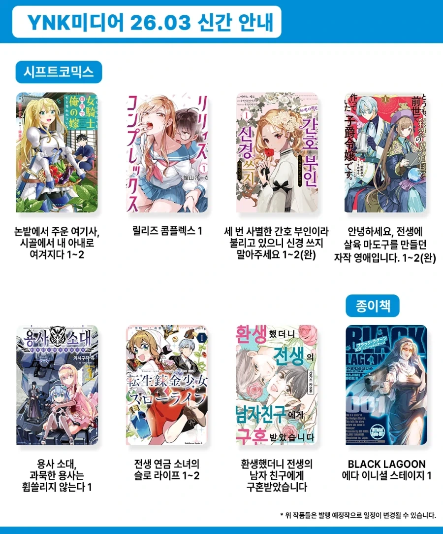 | [서울미디어코믹스] 2026년 03월 발행 예정작 (0) | 2026.02.23 |