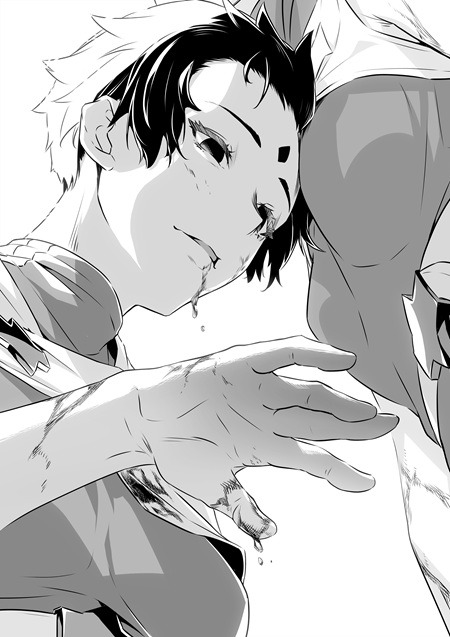 니리츠: 모노크롬은 구도가 생명이므로, 그렇게 말씀해 주시면 기쁩니다. 그때 예전에 라이트노벨을 읽고 있었을 때, 구도에 정교한 그림이 너무 뛰어나서 충격을 받은 적이 있었습니다. 일러스트레이터인 우나지 선생님이라는 분으로, 특히 『狗牙絶ちの劔 ―刀と鞘物語―』의 삽화는 보통 사람이 나란히 있는 것이 아니라 퍼스가 뛰어나고, 만화 같은 스피드감도 있어 엄청난 임팩트가 있었습니다. 했습니다. 삽화에는 제한이 있는 것 같지만, 이를 돌파한 그림은 매우 인상 깊게 남고 이야기를 활기차게 만들 수 있어, 그런 일러스트를 목표로 하고 싶다고 생각하면서 그리고 있습니다.