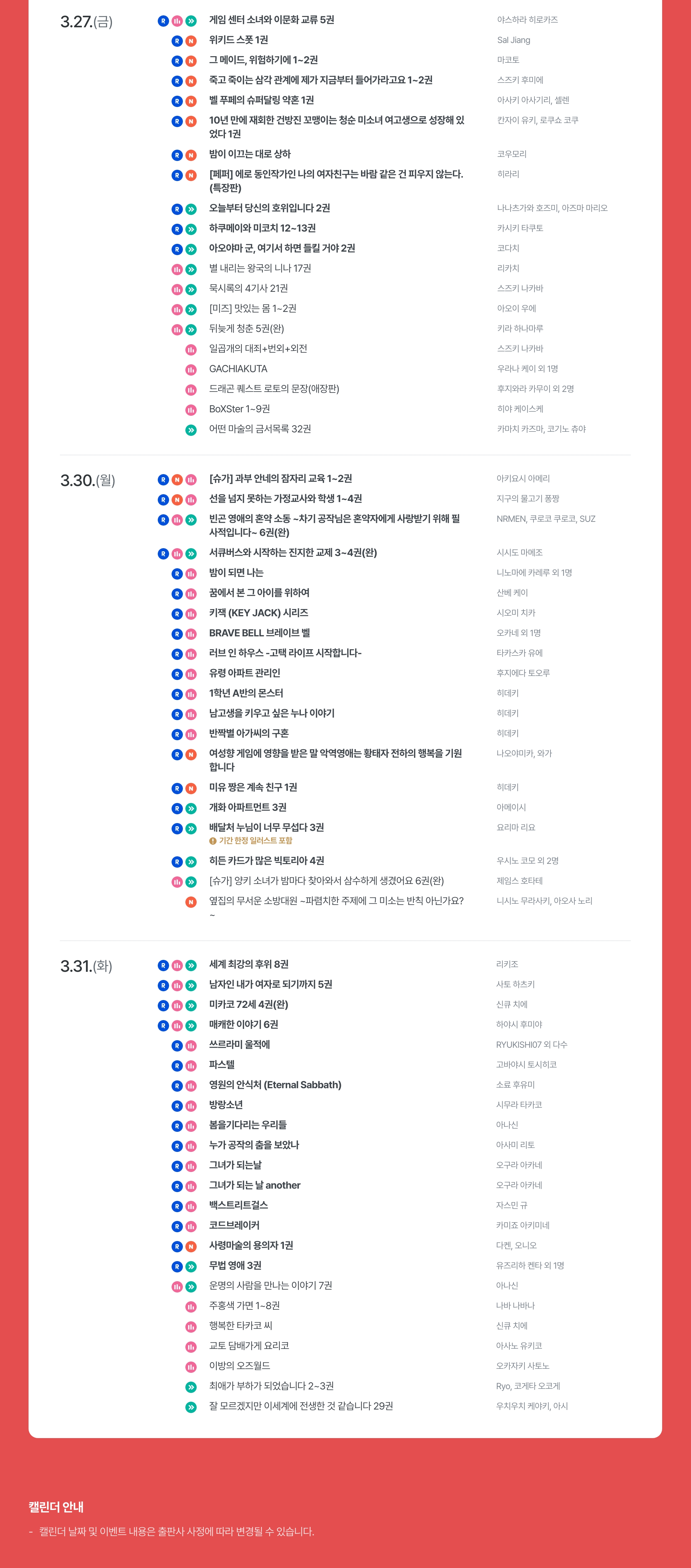 | [대원씨아이] 2026년 03월 발매예정목록 (0) | 2026.02.27 |